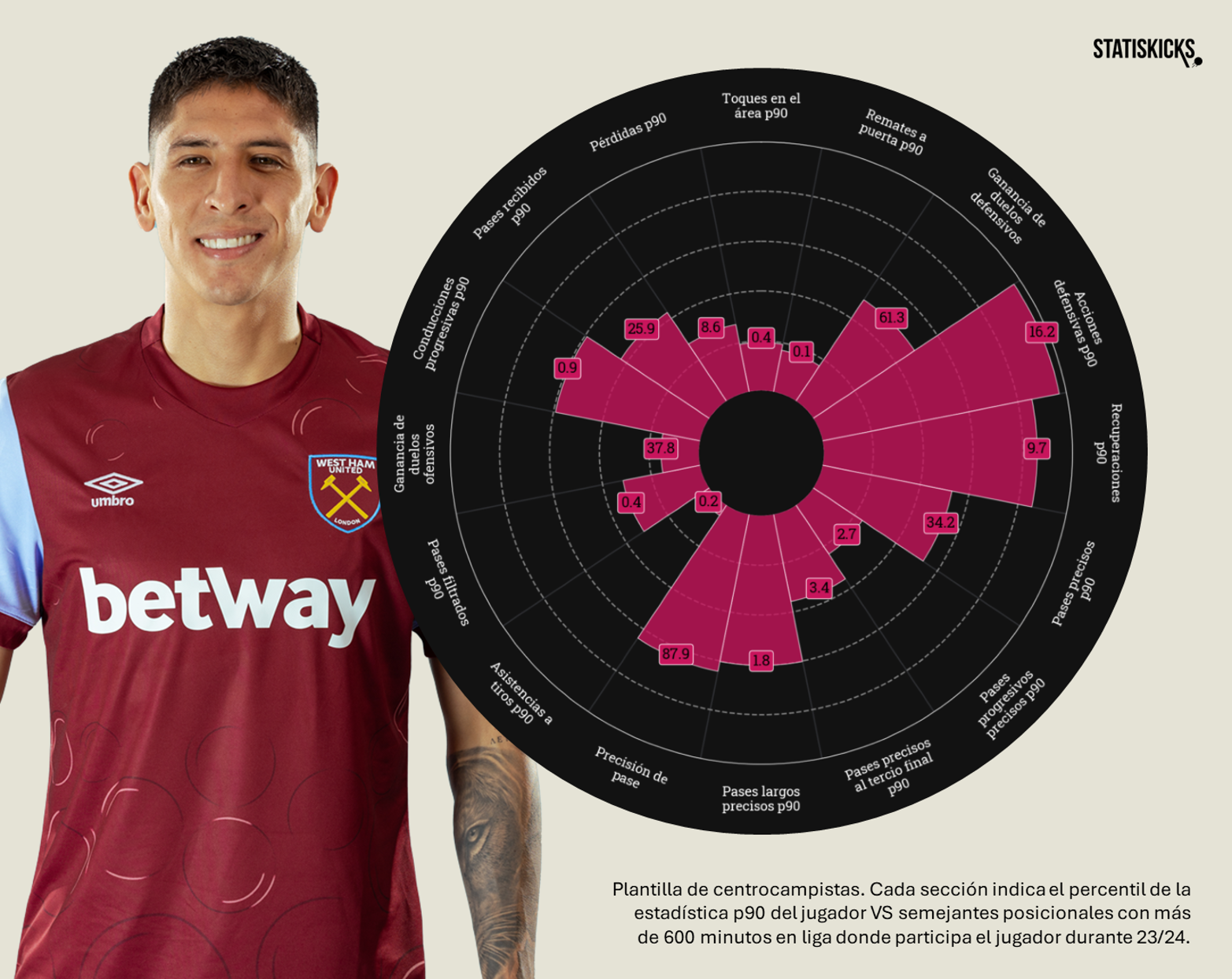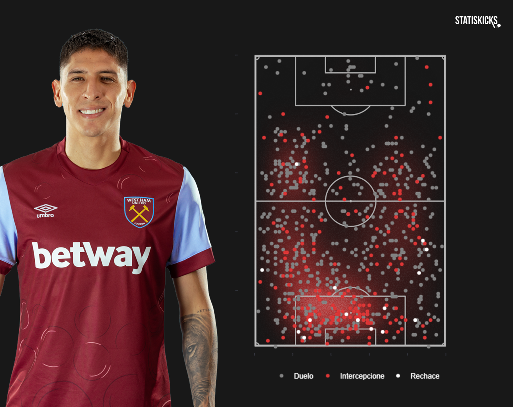 Lo más importante, es que Edson llegó a unos ‘Hammers’ que suelen ser reactivos bajo las órdenes del técnico escocés, para luego dañar al oponente en transición ofensiva con elementos como Jarrod Bowen, Mohamed Kudus, Michail Antonio o Lucas Paquetá. Dentro de esa propuesta, el mexicano ha explotado su juego sin balón, tanto que es el primero en acciones defensivas exitosas del West Ham, jugando principalmente en doble pivote (4-2-3-1) junto al checo Tomás Souček, aunque muchas veces también defiende como tercer central.